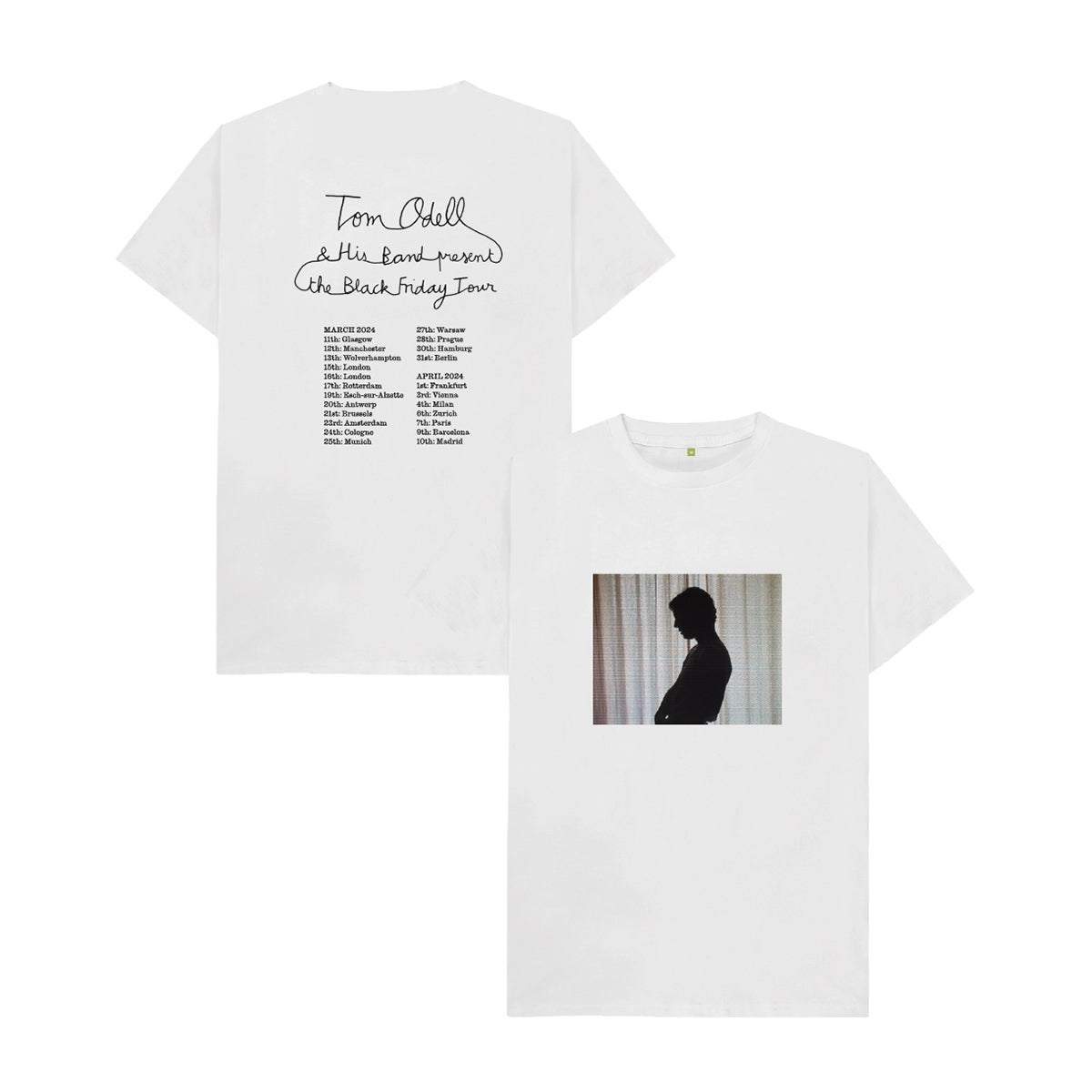 White t-shirt featuring Tom's picture on the front and the tour dates on the back.