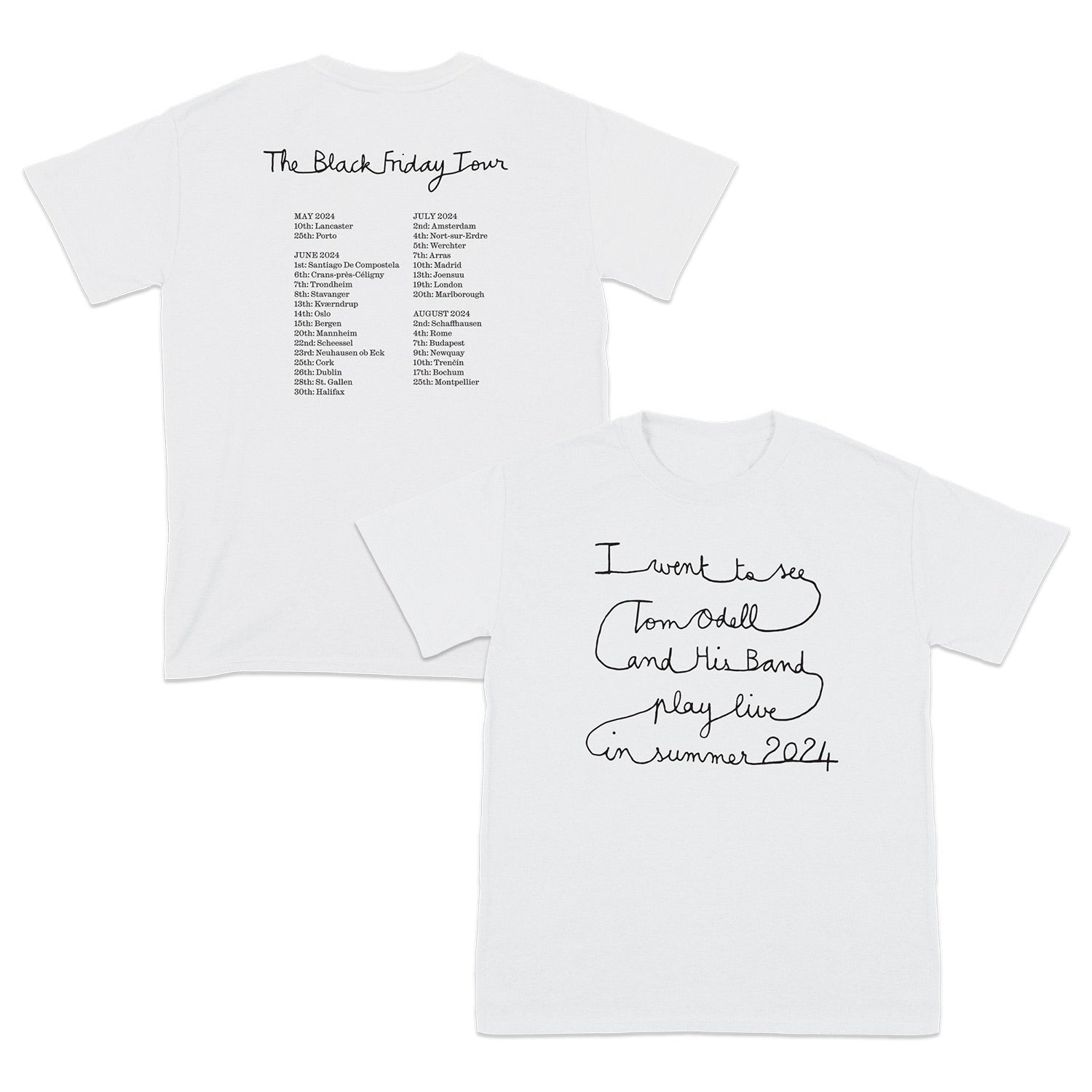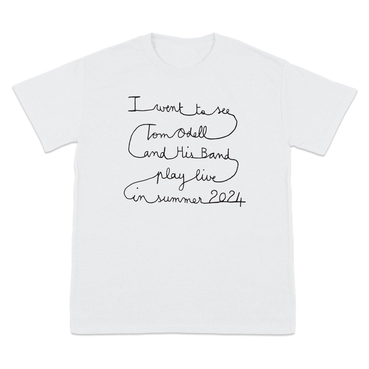 100% cotton white t-shirt featuring a 'I went to see Tom Odell and his Band play live in Summer 2024' front print and tour dates back print.